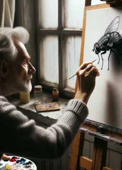 «Xудожник Гена жил один в своей квартире. Со временем развелось у него много тарелок и чашек, которые он забывал мыть. Он был одинок и все реже выходил из дому, чтобы повидать друзей. Но жила в его квартирке...