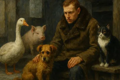 Молодая рыжая собака — помесь такса с дворняжкой — очень похожая мордой на лисицу, бегала взад и вперед по тротуару и беспокойно оглядывалась по сторонам. Изредка она останавливалась и, плача, приподнимая то одну озябшую лапу, то другую, старалась дать себе отчет: как это могло случиться, что она заблудилась?