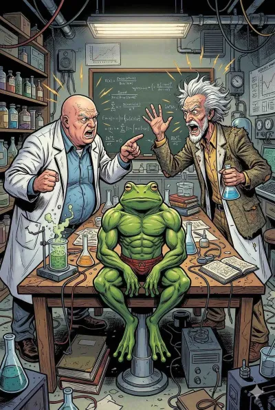 Два университетских профессора, Харди и Гроут, вступают в яростный интеллектуальный спор о физике и философии. Предмет спора — может ли скачущая лягушка достичь своей цели, если каждый последующий прыжок будет короче предыдущего вдвое?