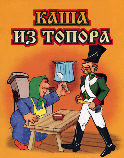 Это весёлая, поучительная сказка «Каша из топора» – вершина мужицкой хитрости и народной мудрости. Шел солдат на побывку, да зашел к старухе в надежде на сытный обед. Старуха, как на грех, оказалась скупа, все свои богатства спрятала и притворилась бедной вдовой. Солдат, конечно, раскусил ее скупость и решил поймать старуху на ее же крючок – сварить кашу из топора. Правда, в процессе приготовления потребовались и соль, и крупа, и масло. Глупая и жадная старуха так хотела узнать рецепт, что доставала продукты из закромов. Солдат поел, да ушел, прихватив топор.