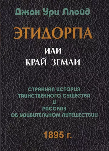 Джон Ури Ллойд (Ллевелин Друри): Этидорпа, или край Земли. Странная история таинственного существа и рассказ об удивительном путешествии.Книга повествует о путешествии, которое совершил человек под руководством загадочного существа во внутренность Земли. События этого путешествия оттеняют всё, что было написано Жюль Верном в его лучшие дни. Но, вероятно, самой исключительной ее частью является то, что всё в ней написанное опирается на научный базис. Доктор Ллойд, автор книги, есть один из самых глубоких исследователей. Он хорошо известен в качестве писателя по предметам, принадлежащим его профессии.