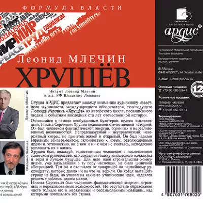 Студия АРДИС предлагает вашему вниманию аудиокнигу известного журналиста, международного обозревателя, телеведущего Леонида Млечина «Хрущёв» из авторского цикла, посвящённого людям и событиям последних ста лет отечественной истории. Оставшийся в памяти необузданным бузотером, нелепо выглядевший, Никита Сергеевич Хрущёв недооценён отечественной историей. Он был человеком фантастической энергии, огромных и нереализованных возможностей. Непредсказуемый и неуправляемый, невероятный хитрец, но при этом живой и открытый. Он был наделен взрывным темпераментом, склонностью к новым, революционным идеям и готовностью, ни с кем и ни с чем не считаясь, немедленно воплощать их в жизнь. Хрущёв был, пожалуй, единственным человеком в послевоенном советском руководстве, кто сохранил толику юношеского идеализма и веры в лучшее будущее. Для него идея строительства коммунизма, уже вызывавшая в ту пору насмешки, не была циничной абстракцией. Тем он и отличался от товарищей по партийному руководству, которые давно ни во что не верили. Он хотел вытащить страну из беды, но уповал на какие-то утопические идеи, надеялся решить проблемы одним махом. Никита Сергеевич был человеком фантастической энергии, огромных и нереализованных возможностей. Но отсутствие образования часто толкало его к неразумным и бессмысленным новациям, над которыми потешалась вся страна.