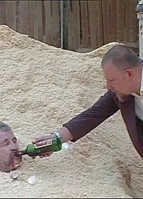 В бригаду зэков, трудящихся над постройкой Великой Русской Стены, привозят долгожданный обед…