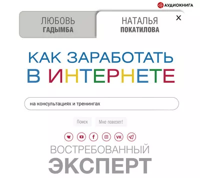 Вы обязательно найдете ответы на этот и многие другие вопросы в аудиокниге «Как заработать в Интернете: на тренингах и консультациях». Любовь Гадымба совместно с Натальей Покатиловой постарались не только максимально ответить на вопросы продаж и продвижения, но и затронули основные барьеры, страхи, ловушки, убеждения, мешающие представителям помогающих профессий «выйти из сумрака» и создать входящий поток клиентов, чтобы получать достойные доходы, занимаясь любимым делом.