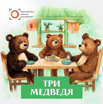 Три медведя — народная сказка с английскими корнями, знакомая каждая ребёнку с детства. В ней говорится о приключениях девочки, которая пошла в лес, заблудилась и набрела на дом трёх медведей. История показывает, что в чужом жилище нужно с уважением к заведённому в нём порядку, не брать чужие вещи без спроса и тем более не ломать их. Сказка также говорит о том, что уходить без взрослых маленьким детям не стоит — в пути с ними может случиться беда, а найти дорогу домой иногда непросто.Музыкальное сопровождение — Сибирская пастораль